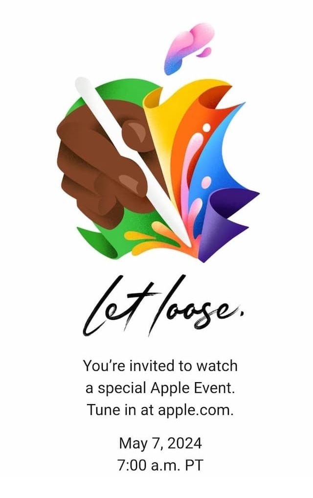 참고로 지난 5월에 열렸던 봄 이벤트 초대장을 보면, 애플 로고를 다양한 색상에 종이의 재질로 형상화 했고, 그것을 애플 펜슬로 그리고 있는데, 이때 새로운 아이패드 프로와 에어, 그리고 애플 펜슬이 공개되었다.
