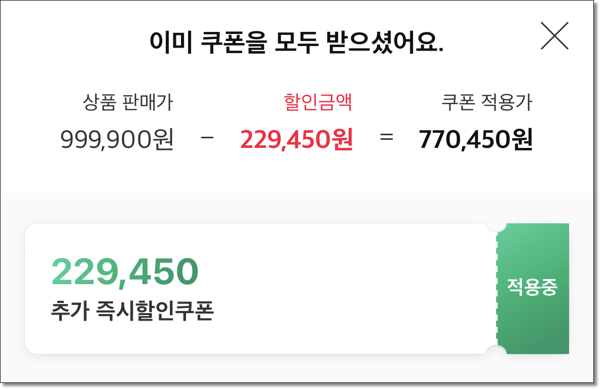 둘째, 즉시할인쿠폰 적용 확인하기